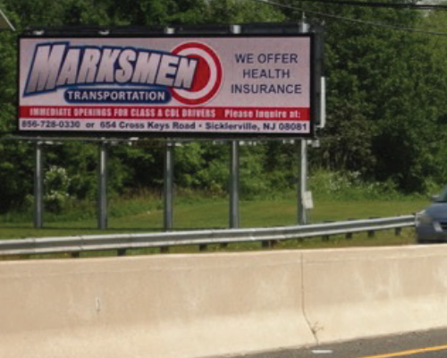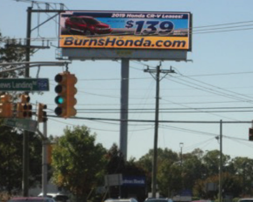 This large prime digital bulletin is viewable to traffic coming from Evesham and Cherry Hill heading into Voorhees, the Virtua Hospital and further south towards the Jersey Shore.