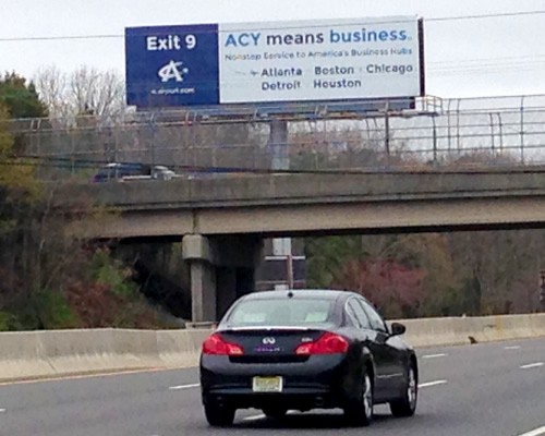 This fantastic highly visible billboard reads to the Garden State Parkway Exits North and South! North Jersey/New York and also South to Cape May and all the cities in between. Straight ahead travelers are leaving Atlantic City and heading toward Philadelphia as well!